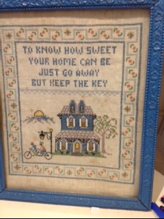I am also always on the look out for embroidered sampler mottos, evoking memories of my childhood as most homes in Scotland in those days seemed to have one on the wall.
